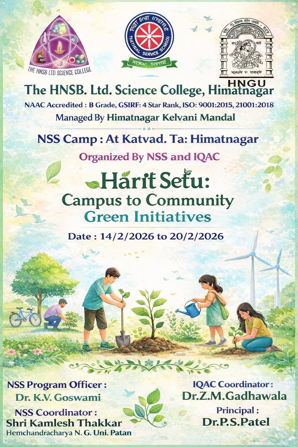 The HNSB Ltd. Science College is a well-established science college in Motipura, Himatnagar, Sabarkantha district, Gujarat, India. It was founded in 1993 to serve students in the region with quality science education. The college is managed by the Himatnagar Kelavani Mandal and was named with support from The Himatnagar Nagrik Sahkari Bank Ltd. through a generous donation.