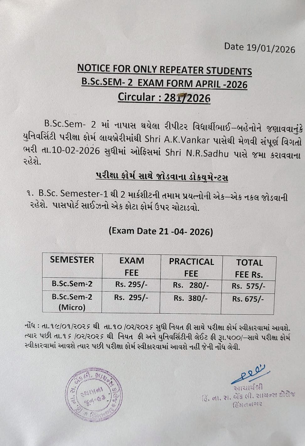 It is an affiliated college under Hemchandracharya North Gujarat University, offering undergraduate and postgraduate programs in science.
